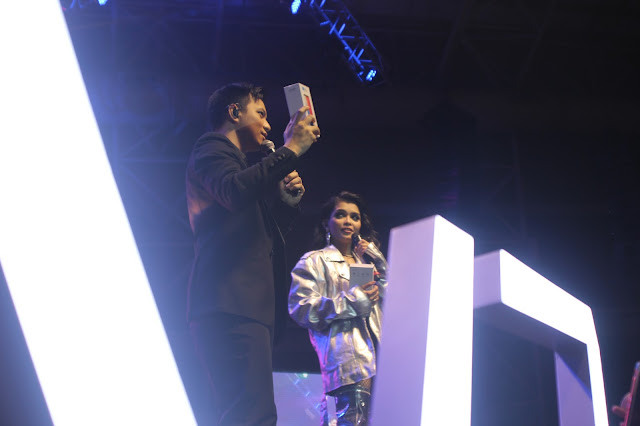 | TJ and KZ personally hand out two Vivo V7 smartphones to their audience during their concert. |